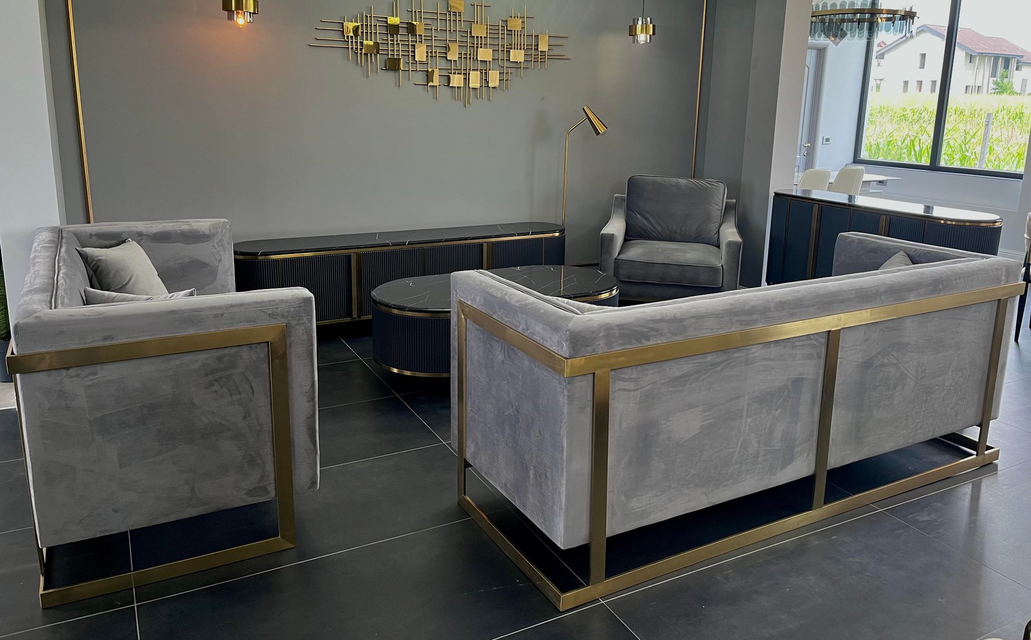 Canapeaua Grej conferă o atmosferă modernă încăperii în care este așezată, datorită designului ei deosebit. Materialul de catifea moale la atingere adaugă doar un motiv suplimentar pentru a completa camera cu această canapea.