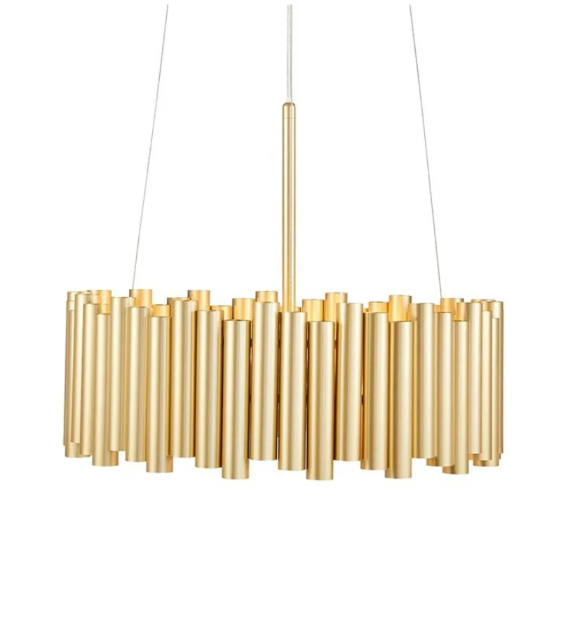 Candelabrul Majestic este un corp de iluminat suspendat, de dimensiuni reduse, care împreună cu aplicele din familia sa pot da eleganţă şi stralucire într-un dormitor, hol sau chiar într-un living de dimensiuni reduse. Echipat cu 3 dulii G9, puteţi opta pentru intensitatea de lumină preferată de dvs. în spaţiul în care îl veţi monta. Tuburile aurii, elegante, dau un aer de grandoare. Finisajul premium şi metalul impecabil lucrat vor oferi acestui corp un aer chiar modern.