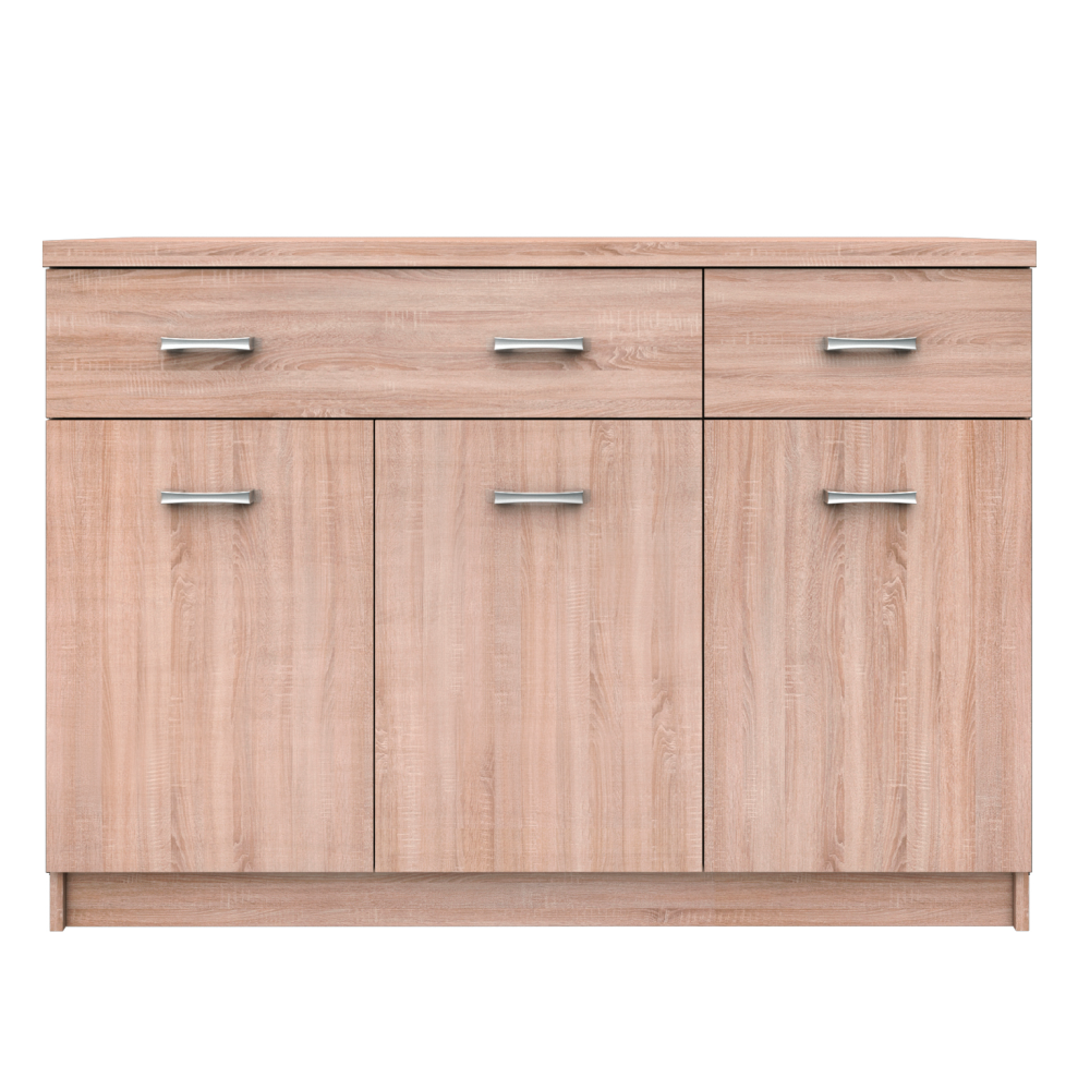 Comodă 3D2S TOPTY TIP 23 Material: PAL melaminat Culoare: stejar Sonoma Dimensiuni (LxAxÎ): 120x33x85 cm Dimensiuni uşă (LxL): 39,6x54,6 cm Trei uşi Două sertare Rafturi Ansamblu sectorial modern, potrivit pentru mobilarea birourilor, a locurilor de muncă, a camerelor de zi sau a holurilor.