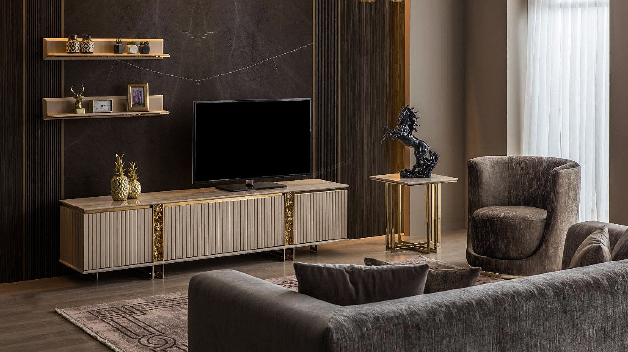 Pentru a aduce un echilibru perfect în casa ta, este necesar să îți amenajezi spațiile cu stilul care ți se potrivește, personalizând până la cele mai mici aspecte. Măsuţele decorative joacă şi acestea un rol important, designul lor modern și elegant schimbând vizual, dar și pragmatic spațiile de locuit. Pe lângă calitatea lor de a redefini un anumit spatiu, măsuţele decorative au avantajul de a oferi funcționalitate în ce privește ajutorul pe care îl oferă pentru a aşeza diverse obiecte de decor mici, telecomenzi, băuturi, reviste, cărţi, neignorând şi aspectul vizual pe care trebuie sa îl ofere. Colecţia Fer se remarcă, mai ales, prin stilul opulent care îl poate da livingului dvs. Accentele aurii cu aspect şifonat, riflajele în MDF, culoarea şampaniei cu griul texturat luxos, blaturile din marmură, picioarele din oţel inoxidabil cromat auriu şi toate celelalte mici sau mari detalii fac din colecţia Fer una rafinată.