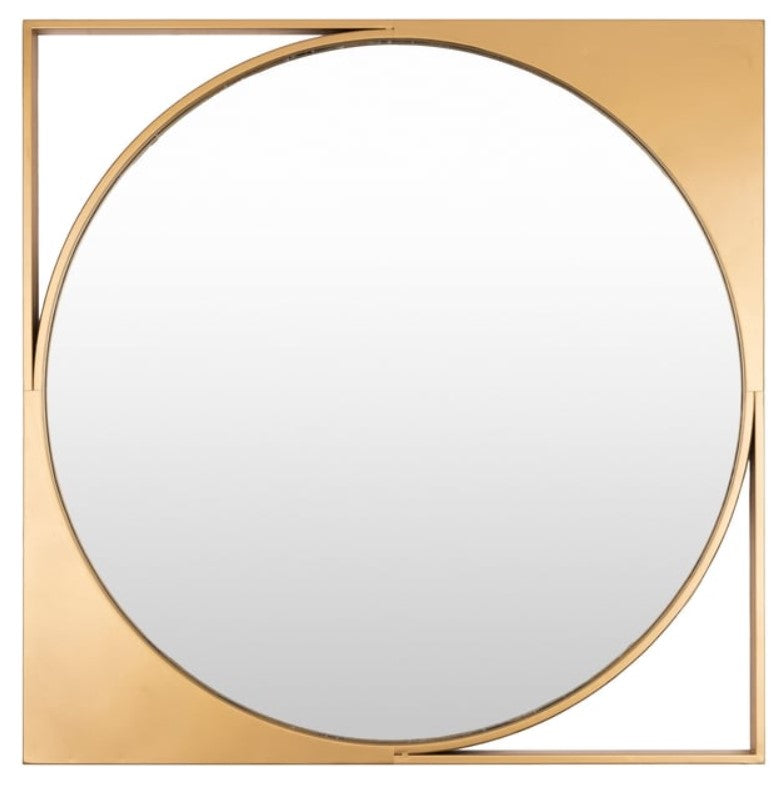 Această oglindă este încadrată în mod asimetric şi unic într-un cadrul din metal şi încadrează perfect scena unui decor modern. Finisajul auriu al ramei aduce un plus de eleganţă peretelui pe care va fi agaţată. Pusă într-un hol sau dormitor va aduce spaţiului un plus de design atent ales care fascinează prin simplitate şi unicitate.