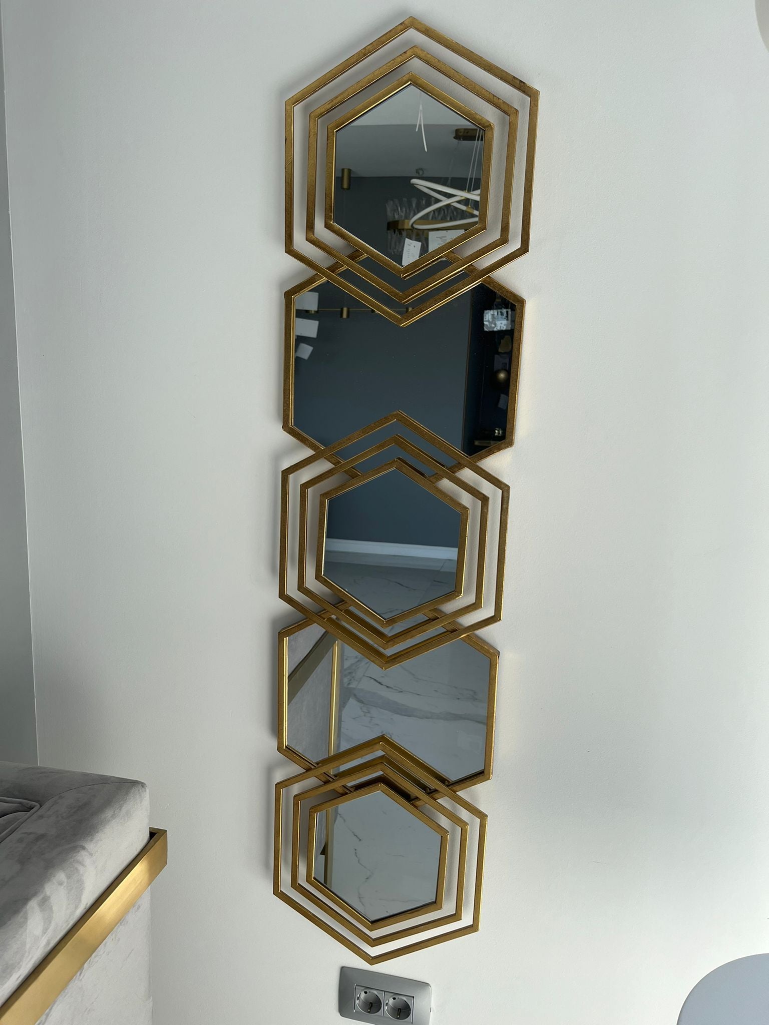 O oglindă decorativă reprezintă o piesă de mobilier versatilă, ce îndeplineşte atât un rol funcţional, cât şi un rol estetic. O oglindă decorativă potrivită va schimba radical aspectul unei camere, creând impresia de spaţialitate şi luminozitate. Pe lângă asta, unele vin în forme extravagante care devin adevărate opere de artă în sine. Este şi cazul oglinzii Shape, formată din 5 hexagoane care se intercalează şi devin un obiect de decor uşor de montat pe verticală sau orizontală pe hol, în living, în dormitor sau în dresingul dvs.