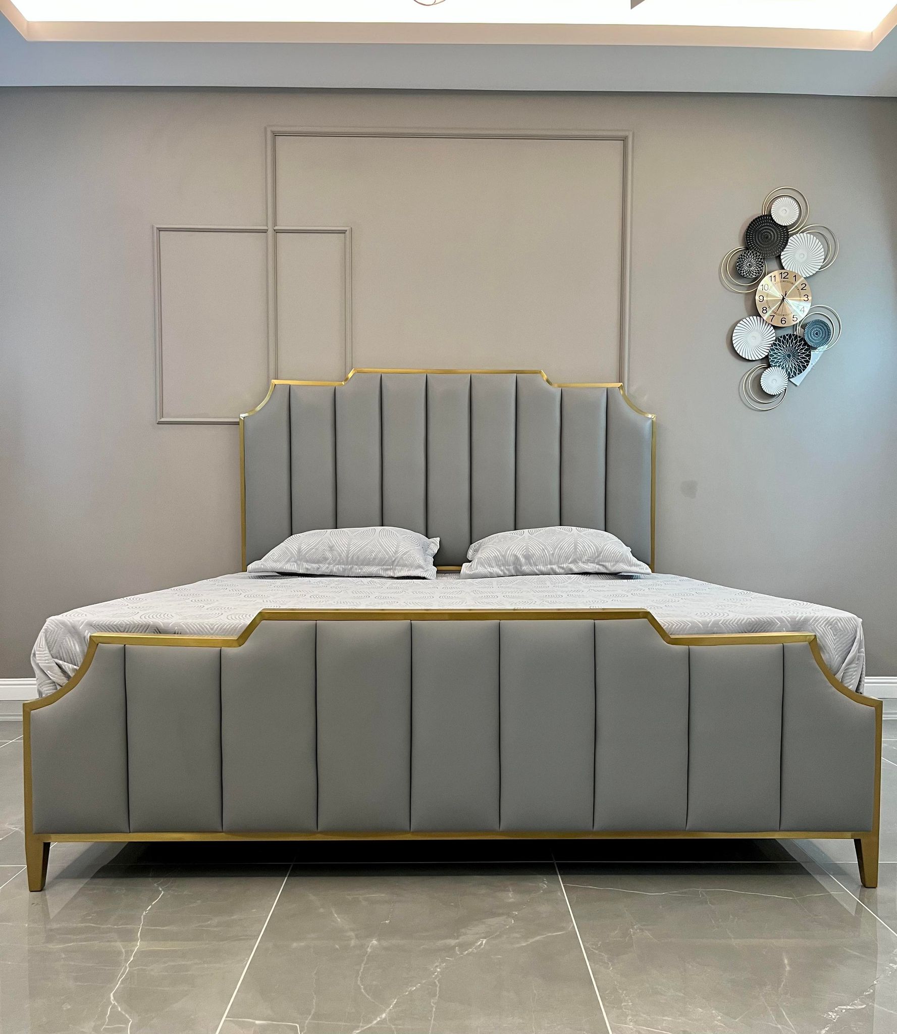Cu o tăblie tapițată din piele ecologică și detalii aurii, Patul Famous cu somieră inclusă este patul perfect pentru dormitoare în stil clasic și contemporan. O interpretare modernă și elegantă a patului clasic, patul Famous are un design elegant.