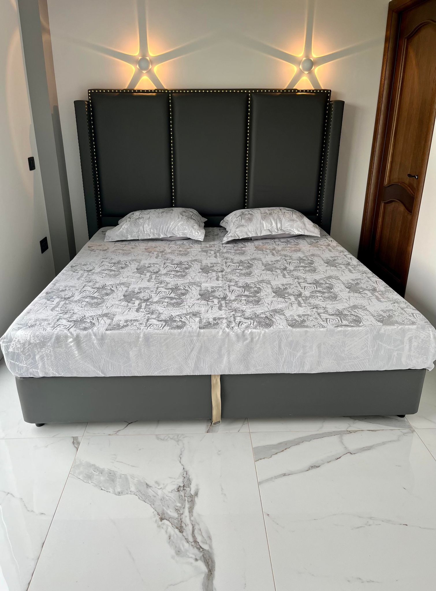 Liniile drepte, țintele decorative și designul contemporan al patului Grey alungă banalul din orice dormitor. Tăblia capitonată cu piele ecologică reprezintă una dintre cele mai noi tendințe în materie de design interior. În plus, somiera metalică pneumatica prevăzută cu sistem de rabatare și ladă interioară , ce sunt incluse în preț, îți oferă un generos spațiu de depozitare.