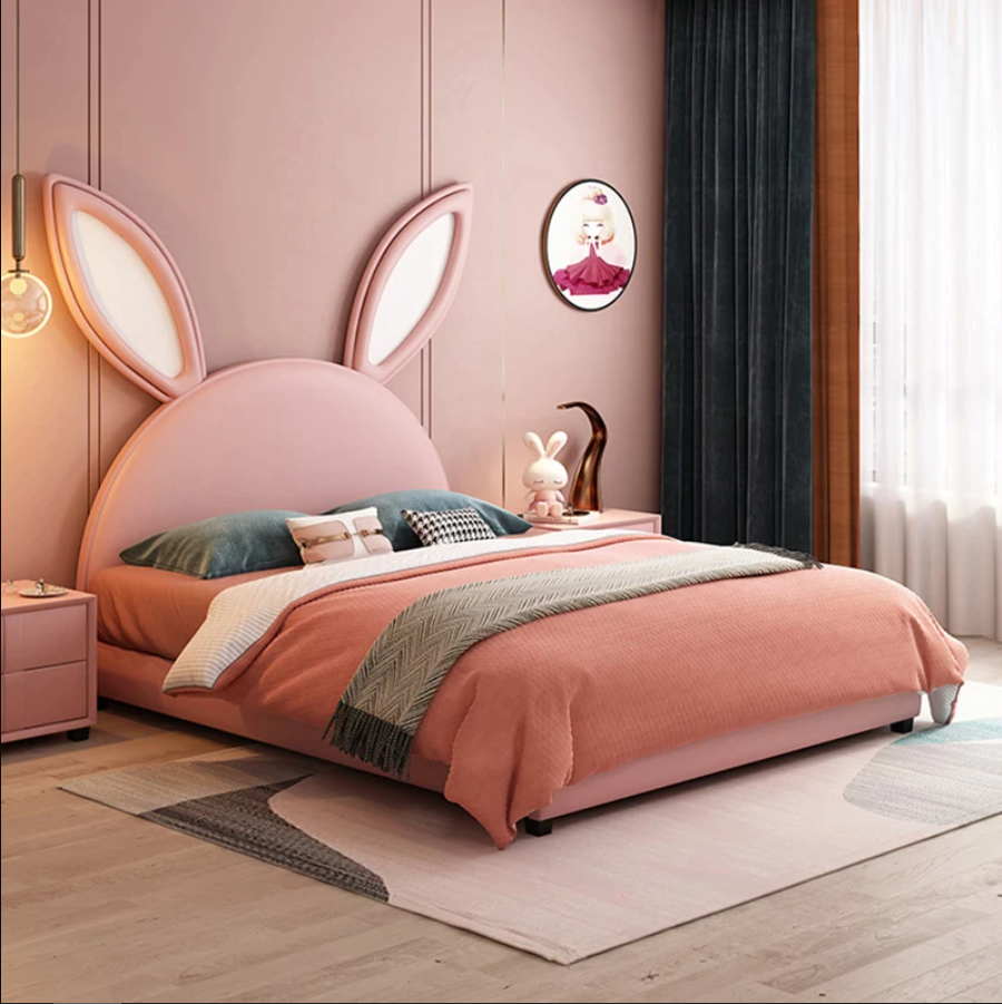 Colorat și vesel, patul Bunny va încânta orice micuța domnişoară, care își dorește o cameră desprinsă, parcă, din poveștile fermecate cu iepuraşi şi prietenii lor loiali. Combinația cromatică de alb și roz aduce prospețime decorului, iar „urechiuşele” tăbliei transformă patul Bunny într-o piesă de mobilier inedită. Tăblia tapiţată cu burete de înaltă densitate şi piele ecologică o fac uşor de curăţat şi întreţinut, spaţiul generos de depozitare de sub pat, somiera hidraulică inclusă, colţurile rotunjite anti-lovire, fermitatea lemnului de pin, cadrul din MDF - toate aceste materiale fac din această piesă un pat ideal şi durabil pentru copilul dvs.