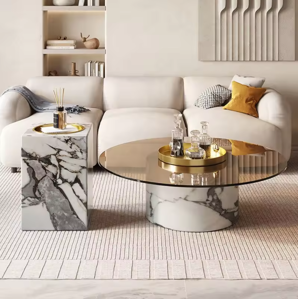 O piesă de mobilier uimitoare formată din două măsuțe de cafea care împreună redau setul Canta. Designul îmbină fără efort stilul luxuriant și funcționalitatea, adăugând o notă de glamour livingului dvs. Designul contemporan este dat și de materialele premium folosite la aceste măsuțe: blat din sticla securizata, un model unic de marmură, finisat la temperaturi și cu presiuni mari cu rășini speciale care oferă rezistență împotriva petelor de cafea, suc sau alte băuturi sau substanțe. Suprafața a celor 2 masute oferă loc suficient pentru cărți, vaze, decorațiuni sau băuturile dvs. preferate. Bazele realizate din oțel inoxidabil placat dau stabilitate de neclintit și împreună reiese un design atemporal, minimalist, elegant, dar și funcțional. Fie că optați să le păstrați împreună sau poate o piesă centrală și una lângă canapea, setul de măsuțe Canta este o alegere de designer.