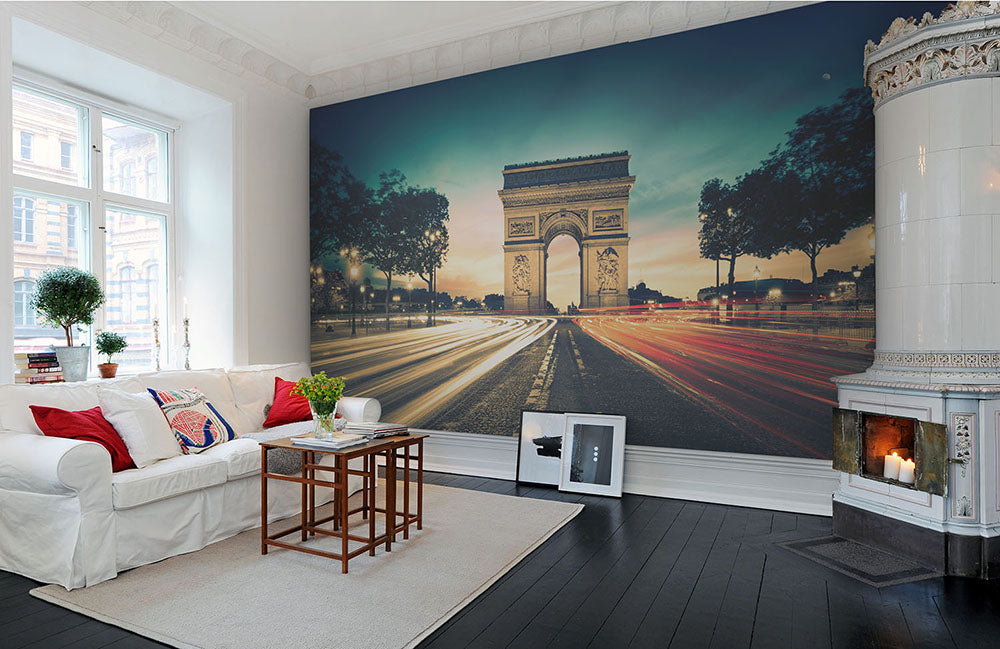 Creeaza o atmosfera pariziana cu Arcul de Triumf la apus. Acest fototapet este perfect pentru a alina dorul de orasul frantuzesc.