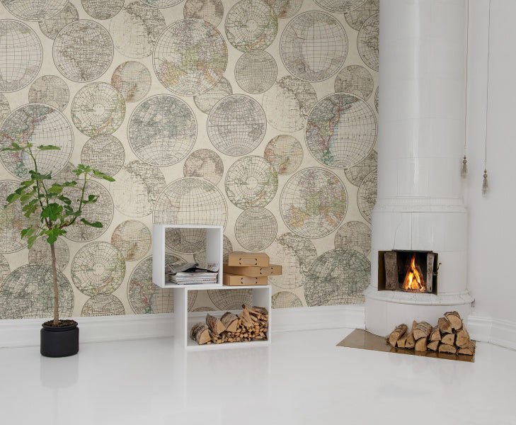 Decoreaza-ti camera cu o colectie de globuri. Toate au perspective diferite, continente si tari. Acest fototapet se va potrivi pe un perete mare unde cercurile pot ocupa un spatiu amplu. Un tipar dinamic a unei lumi frumoase.