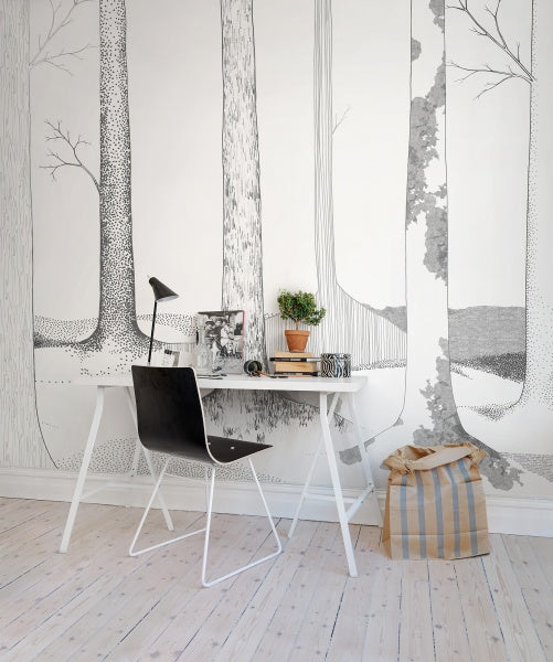 Lasa copacii sa creasca pe peretii tai si sa intre natura la tine in casa, cu busteni si pietre, lasa-i sa te invaluie in peisajul calm, pentru ca tu sa poti ramane in padure.
