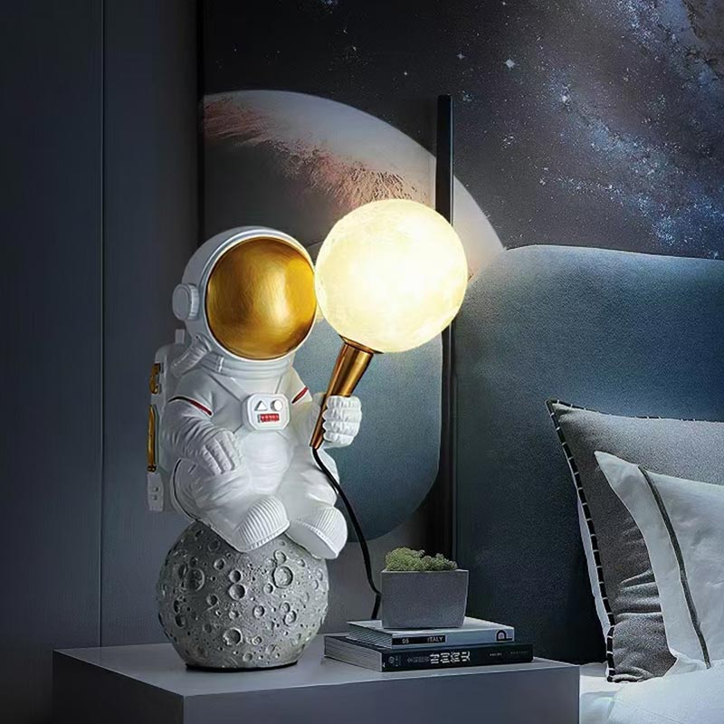 Veioza Neil Amstrong poate să ajute un mic visător să fie mai aproape de idealurile copilăriei. Este o veioză versatilă care poate să ofere o lumină ambientală şi în alte locuri decât în camera unui copil. Un observator, un loc de joacă, săli de clasă, gradiniţe sau alte aplicaţii care au nevoie de un astronaut haios care stă aşezat pe Lună, realizat din materiale de înaltă calitate, răşină, acryl şi polietilenă lucrată cu atenţie. Cu un soclu potrivit unei surse G9, veioza poate să ţina locul unei lămpi de veghe în camera unui bebeluş dacă alegeţi un bec cu o luminozitate scăzută.